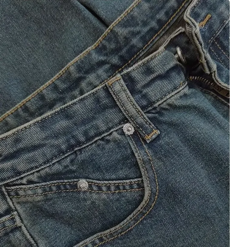 美式休閒復古藍高街高腰直筒水洗牛仔褲